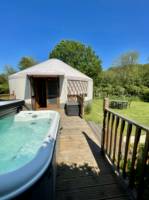 The yurts can comfortably sleep four adults or a family of five , in a ground-floor bedroom with superking Hypnos bed and a galleried first-floor bedroom with three single Hypnos mattresses (or a double and a single); and they will add a travel cot and highchair for £10. They also provide towels, duvets and all bed linens, and dishes, cutlery and crockery. There is a proper bathroom with flushing toilet, shower, plenty of hot water and complementary toiletries, an integrated kitchen with washer/drier, fridge/freezer, dishwasher, microwave, oven and hob with extractor, toaster and kettle. Plus, a separate sitting room with custom-made sofas, a dining table and chairs for six, and everything else you could possible need to make you feel right at home – electric heaters and a flame-effect fire, a Freeview TV and DVD player, a CD player and a selection of DVDs, books and board games for rainy days. There's also outside furniture, a fire pit and barbecue – while each yurt has its own hot tub!