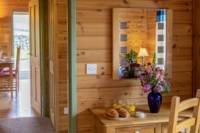 The four log cabins are like self-catering cottages basically, which really make the most of the Great Outdoors and the superb rural location. Three of the cabins sleep 4 while the other sleeps 6, and they all have fully-equipped kitchens with dishwasher and microwave, a minimum of two bedrooms and two bathrooms, spacious living areas that open onto decks with outdoor furniture and barbecue. They're all heated by an eco-friendly ground source heat pump, and all of them welcome dogs. Welcome packs come with freshly laid eggs and other basics, plus there is a small shop on the farm that sells most of the other things you might need, including locally sourced produce. Also, bear in mind that 3 of the 4 cabins are wheelchair-friendly, with easy ramp access, wide doorways, grab rails, wet rooms, and over 40 pieces of additional accessibility equipment you can add to your booking. You can also charge your electric car at one of two 22kwh chargers.