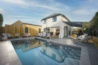 Let's start outside, because the heated pool alone puts it in the rare category of holiday homes in British seaside towns that you might not want to leave. A large, lush and very private outdoor area contains pool, terrace, sun-loungers and outdoor shower, while covered dining and a fancy gas barbecue under a glass awning makes for a very grown-up, al fresco space. This is more LA than town-centre Cornwall, a feeling that continues as you head inside to the stunning open-plan lounge and dining area, with garden and pool views to all sides. There's a second living room, with even more leisure space, and a high-spec kitchen and breakfast bar that looks as if it's just waiting for your private chef to start work (chef, sadly, not included, you'll have to bring your own).